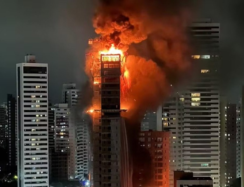 Imagens de redes sociais mostram que o incêndio começou no topo e se espalhou por alguns andares abaixo.