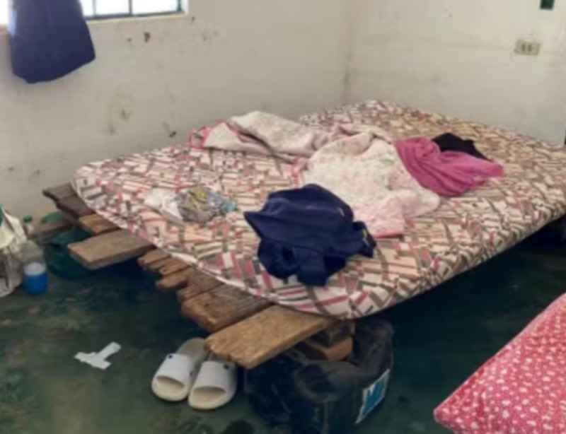 Dormitório com 'cobertura precária' e janela quebrada em que dormia um trabalhador na fazenda Talismã, de Leonardo, localizada em Goiás — Foto: Reprodução/Relatório Fotográfico da Inspeção