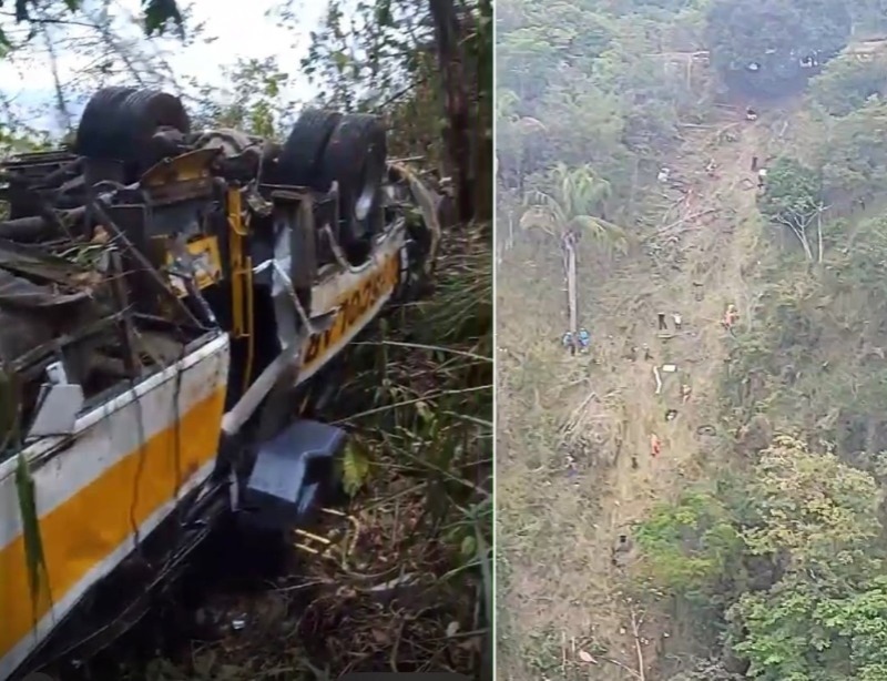 O ônibus despencou de uma barreira com altura de 400 metros. O veículo abriu uma clareira e deixou um rastro por onde passou até parar em uma região de mata. O local dificultou o trabalho de resgate, que começou a tarde e só terminou de madrugada. Pessoas que moram na região desceram antes mesmo dos bombeiros chegarem, para ajudar as vítimas.