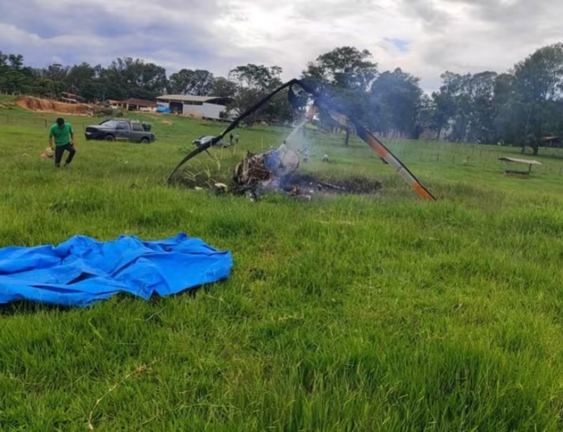 Não há informações sobre o que causou o acidente, mas funcionários da fazenda disseram à Polícia Militar que ouviram um barulho antes da queda do helicóptero, que era adaptado para pulverização de lavouras.