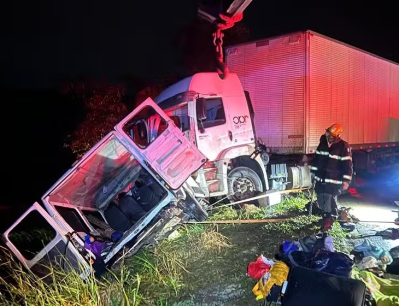 Nove pessoas morreram em uma batida entre uma carreta e um micro-ônibus na noite dessa terça-feira (13), na BR-251, em Grão Mogol, no Norte de Minas. Dez pessoas ficaram feridas. Não há informação sobre quantas pessoas estavam nos dois veículos.