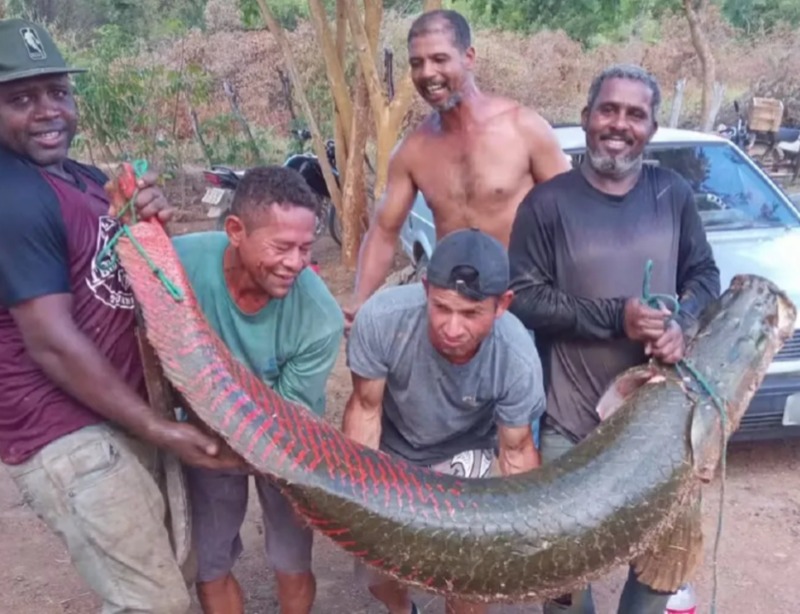 O pirarucu foi encontrado na Lagoa do Mucambo e capturado por volta das 16h. Moradores da cidade registraram o momento em vídeos, impressionados com o tamanho do animal. Após a façanha, o grupo de pescadores planeja vender o peixe.
