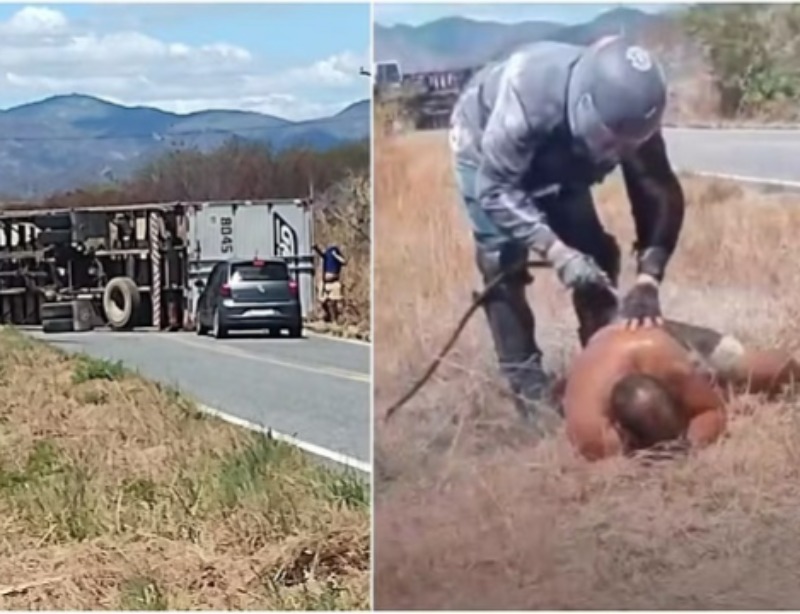 Um ataque de abelhas fez um motorista perder o controle do caminhão, bater em um poste e tombar o veículo no quilômetro 323 da rodovia CE-265, no município de Catunda, no interior do Ceará, na tarde deste domingo (17).