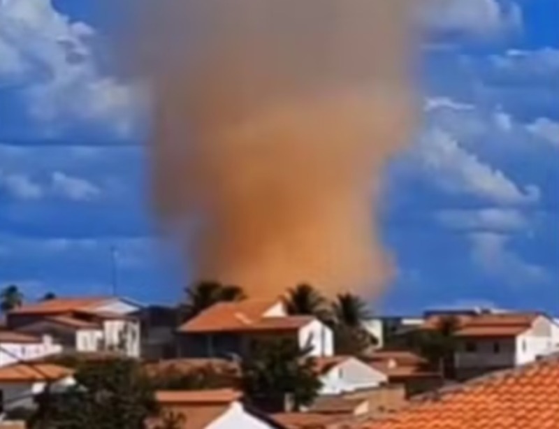 Um fenômeno atmosférico impressionou moradores de Nova Russas, no interior do Ceará, na tarde da última quarta-feira (8). Um redemoinho de poeira formou-se na zona rural do município, levantando uma coluna de poeira e material solto que pôde ser vista a distância.