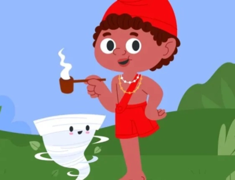 O saci-pererê é o personagem de um menino negro, de uma perna só, que se locomove saltitando e gira em redemoinhos. É muito travesso e esconde objetos. Usa um gorro vermelho e fuma um cachimbo.