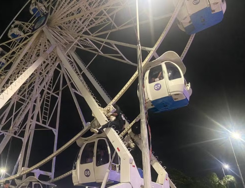 A roda-gigante instalada na Ponta Negra, em Manaus, travou na noite deste sábado (22), pouco mais de 48 horas após a inauguração. O equipamento estava lotado no momento da paralisação, e pessoas que estavam nas cabines divulgaram vídeos relatando desespero. Assista acima.