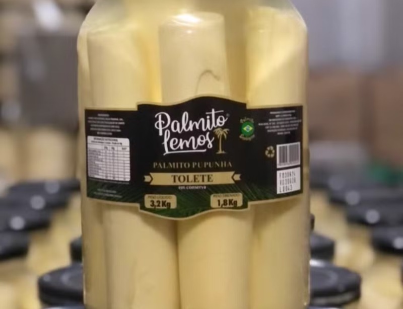 A marca Palmito Lemos foi proibida de comercializar qualquer lote do produto. A medida foi determinada pela Agência Nacional de Vigilância Sanitária (Anvisa) e divulgada no Diário Oficial da União desta segunda-feira (2).