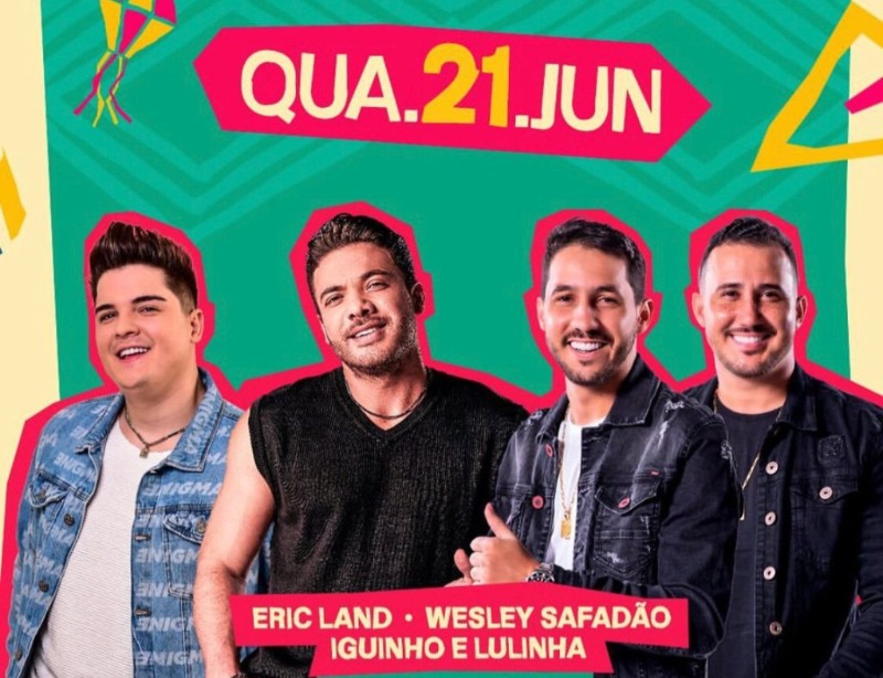 Nesta quarta-feira, dia 21, se apresentarão os artistas locais, Rafael Dono e Hudy Show, e logo em seguida vem os shows de Eric Land, Wesley Safadão, e pela primeira vez na cidade de Patos a dupla do momento, Iguinho e Lulinha, que promete trazer o forró de vaquejada ao São João de Patos.