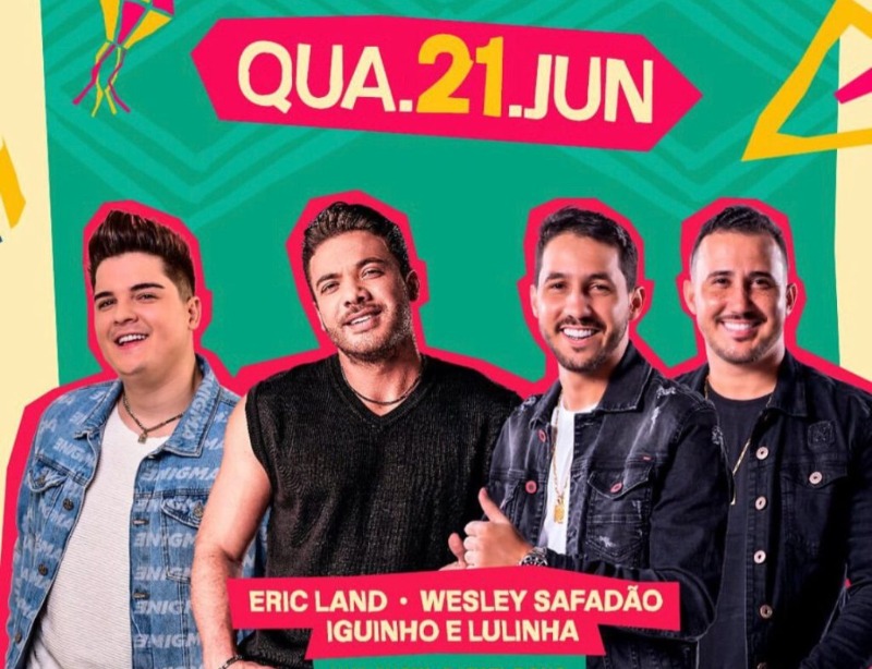 Nesta quarta-feira, dia 21, se apresentarão os artistas locais, Rafael Dono e Hudy Show, e logo em seguida vem os shows de Eric Land, Wesley Safadão, e pela primeira vez na cidade de Patos a dupla do momento, Iguinho e Lulinha, que promete trazer o forró de vaquejada ao São João de Patos.