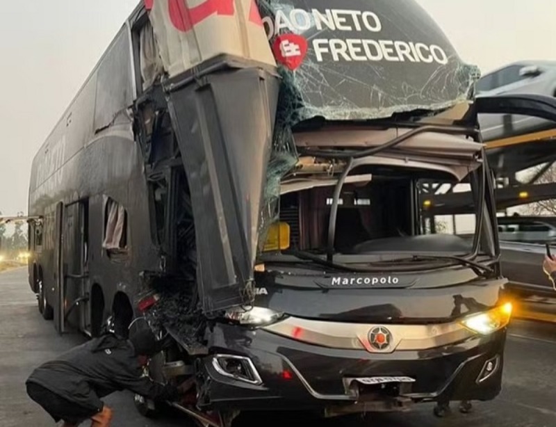 Um ônibus da dupla sertaneja João Neto & Frederico se envolveu em um acidente no km 453 da BR-040, em Caetanópolis, na Região Central de Minas Gerais, na madrugada desta sexta-feira (6), informou a Polícia Rodoviária Federal (PRF). Quatro pessoas ficaram feridas e a frente do coletivo ficou destruída. (veja foto abaixo)