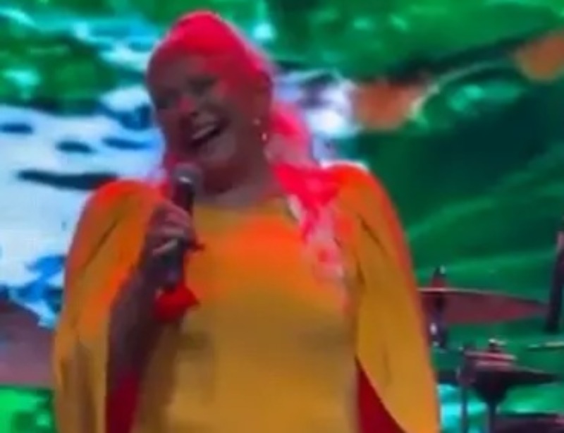 Enquanto cantava um de seus maiores hits, a música Vermelho, a artista completou a letra de forma diferente: “O velho comunista se aliançou ao rubro do rubor do meu amor. Olha a tornozeleira aí, gente!”, disparou, dando sua famosa risada.