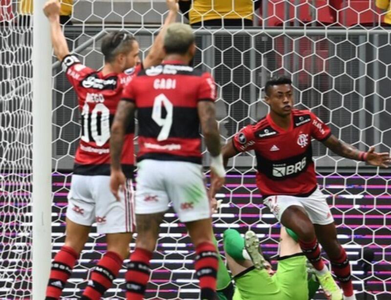 Diferente dos últimos jogos, até por conta da vantagem construída no jogo de ida, o Flamengo deu mais espaço para o Olimpia no início da partida desta quarta. Não sufocou, embora tivesse claramente o domínio da partida. O primeiro susto foi só aos 25, com Gabigol (impedido) chutando para fora. Quatro minutos depois, ele mesmo abriu o placar após boa assistência de Rodinei pela direita. Bruno Henrique, completando de cabeça um passe com GPS de Arrascaeta, ampliou. E Recalde descontou para o Olimpia num contra-ataque em que deixou Léo Pereira e Diego Alves no chão, marcando um golaço.