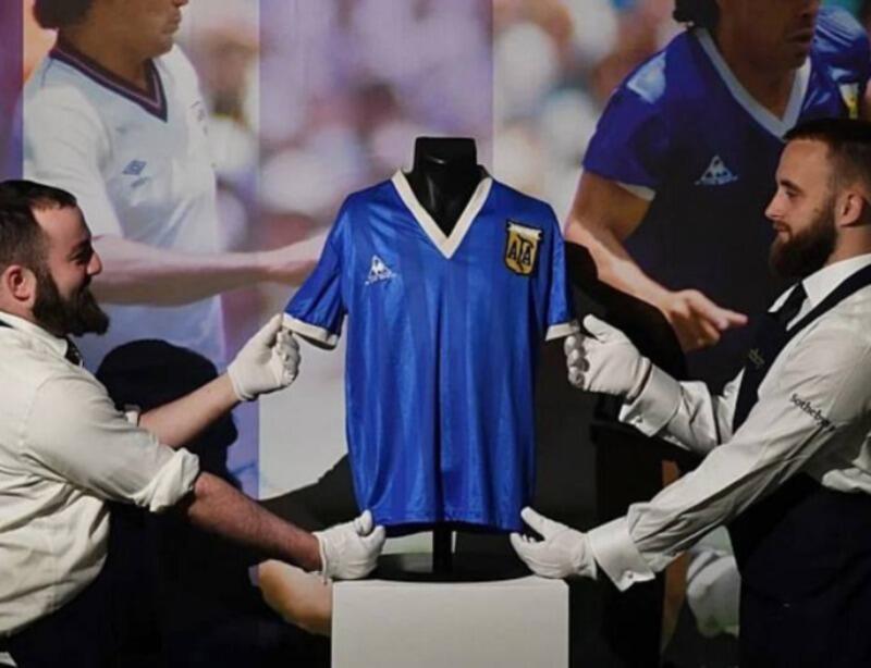 A camisa número 10 usada por Diego Armando Maradona no gol da “Mão de Deus” e no gol do século, nas quartas de final da Copa do Mundo de 1986 no México contra a Inglaterra, foi leiloada por 7,1 milhões de libras (cerca de 44,3 milhões reais).