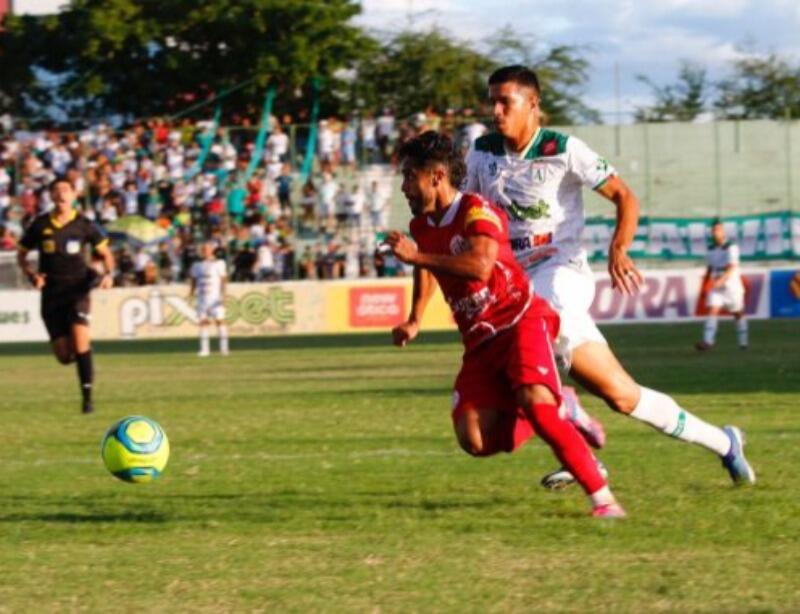 Pensando em um bom resultado, o técnico do Dino, Tardelly Abrantes, mandou para campo uma escalação com André Victor e Iranilson na direita, e apenas Juninho e Jó Boy como jogadores mais avançados. O volante Gustavo Henrique começou na vaga do meia Esquerdinha. Já o alvirrubro atuou com a mesma equipe que goleou o Crato por 8 a 1 no jogo anterior.