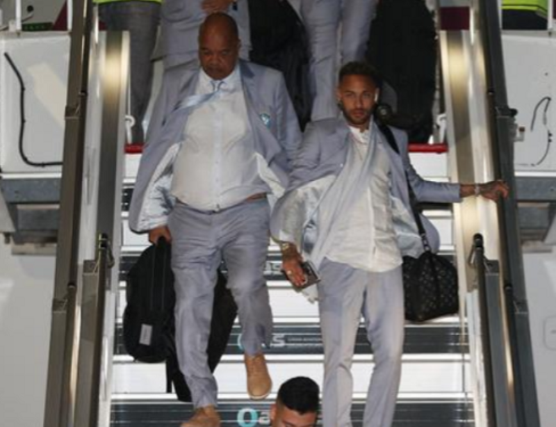 Ednaldo Rodrigues, presidente da CBF e chefe da delegação, Tite e Juninho Paulista foram os primeiros a descer do avião. Na sequência, começaram a descer os jogadores, todos vestindo o traje especial para a Copa, assinado pelo renomado estilista Ricardo Almeida.