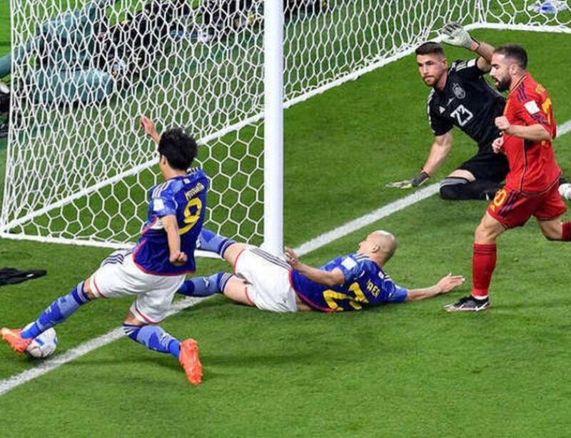 Alguns minutos depois, a seleção nipônica chegou ao segundo gol, que não foi validado de imeditado pela arbitragem, que acusou saída de bola antes de Tanaka ter estufado o barbante. No entanto, com auxílio do VAR, a virada japonesa foi confirmada.