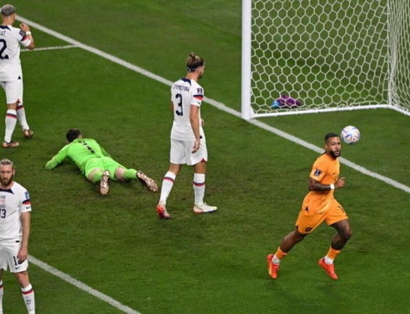 Turner evitou o que seria o terceiro gol europeu. Koopmeiners chutou, o goleiro deu rebote, e Memphis deu um peixinho de cara para o gol, mas o americano conseguiu pegar a bola.