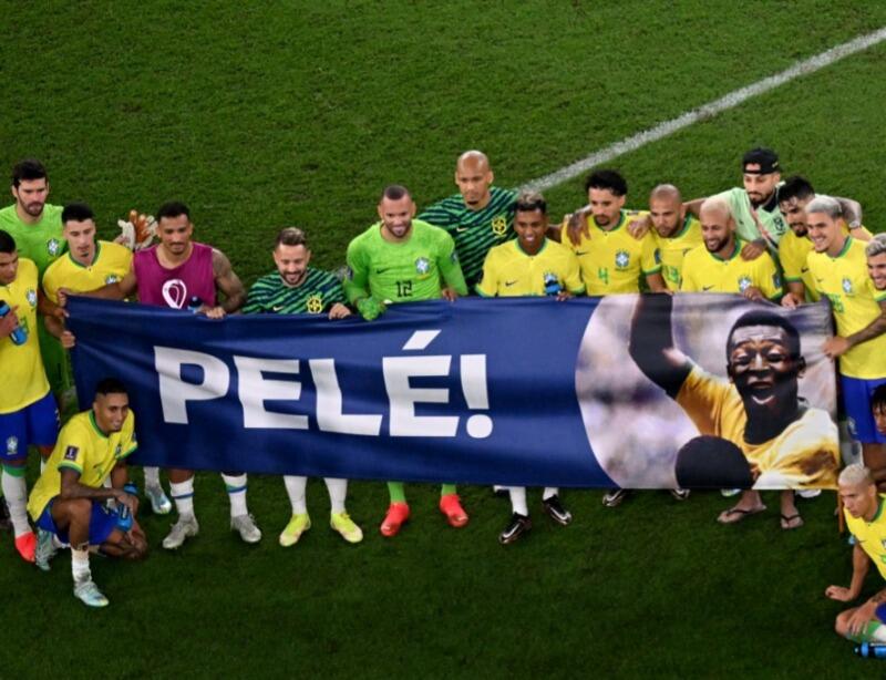 A Seleção fez bonita homenagem a Pelé após goleada contra a Coreia do Sul, por 4 a 1, nesta segunda-feira, nas oitavas de final da Copa do Mundo do Catar. Os jogadores entraram em campo com uma faixa com o nome do maior jogador da história do futebol e uma foto do Rei.