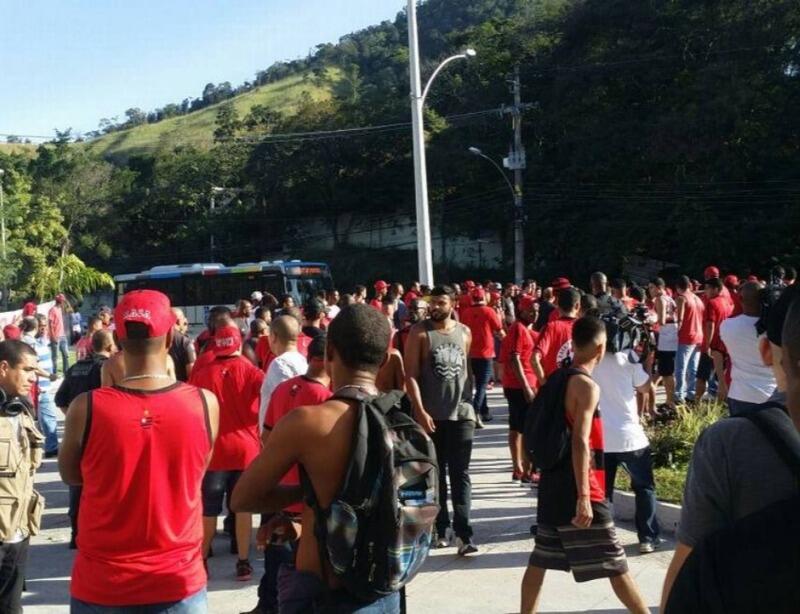 Cerca de 30 torcedores compareceram até a entrada do CT, mas não houve incidente registrado. Havia mais policiais e seguranças que torcedores. O zagueiro Leo Pereira chegou a parar seu carro, abriu a janela e conversou com os rubro-negros, que cobravam mais empenho do time.