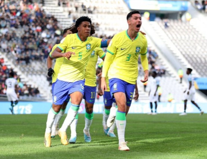 No segundo deles, o camisa 20 levantou na área e Marquinhos bateu forte uma bola venenosa que o goleiro Aniagboso afastou com o pé. O jogo seguiu intenso, com ambos os times se lançando ao ataque. De tanto insistir, o Brasil abriu o placar aos 42 minutos, após escanteio pela esquerda, batido com precisão por Marquinhos para Jean testar para o fundo da rede. E ainda deu tempo da seleção marcar mais um, após lindo contra-ataque de Leonardo: ele tabelou com Savinho, que tocou para Marquinhos fazer o dele, o segundo do Brasil.