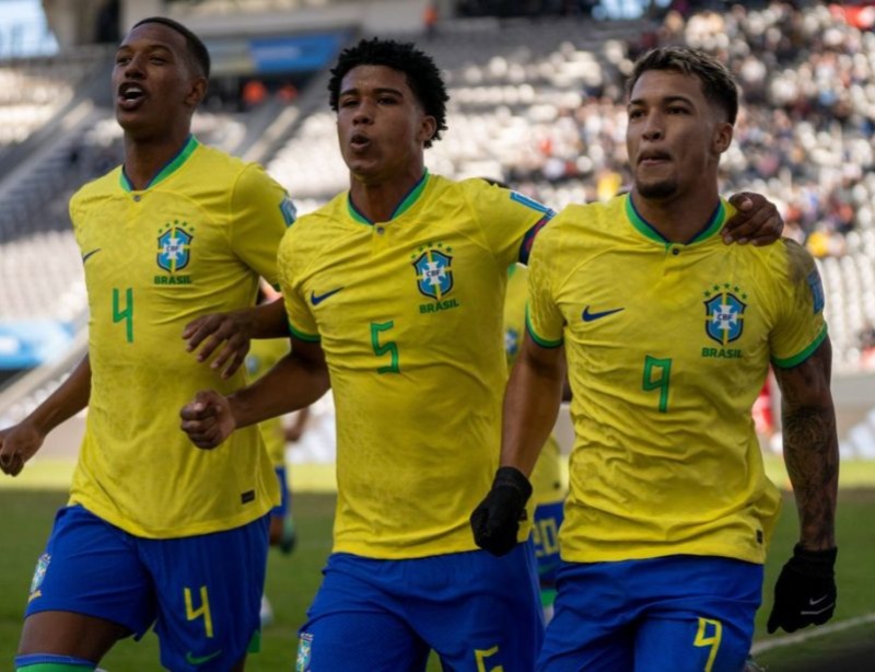 A seleção brasileira masculina Sub-20 derrotou a Tunísia por 4 a 1 na tarde de hoje (31) e avançou às quartas de final da Copa do Mundo na Argentina. Marcos Leonardo e Andrey marcaram no primeiro tempo no estádio Ciudad La Plata, e na etapa final teve mais dois: um de Matheus Martins e outro de Andrey, já nos acréscimos da partida. Antes do fim, a Tunísia descontou com Ghorbel.