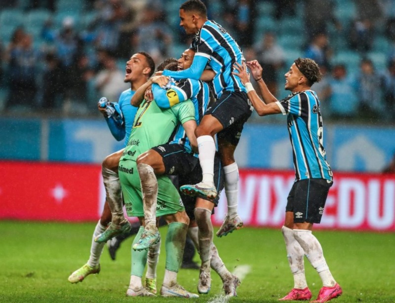 O Grêmio está na semifinal da Copa do Brasil. Em Porto Alegre, o Tricolor Gaúcho empatou com o Bahia por 1 a 1 no tempo regulamentar e precisou dos pênaltis para avançar: triunfo por 4 a 3, na noite desta quarta-feira (12), na Arena. Além de toda a emoção em campo, a partida teve momento de apreensão por conta do ciclone extratropical que passou por Porto Alegre e causou fortes chuvas na região. Por isso, o confronto começou com uma hora de atraso.