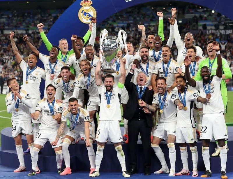 O Real Madrid venceu o Borussia Dortmund por 2 a 0, neste sábado (1°), em Wembley, e conquistou o título da Champions League. Em início de jogo surpreendente, o Borussia Dortmund criou as melhores chances do primeiro tempo, mas Adeyemi desperdiçou, e Füllkrug parou na trave.