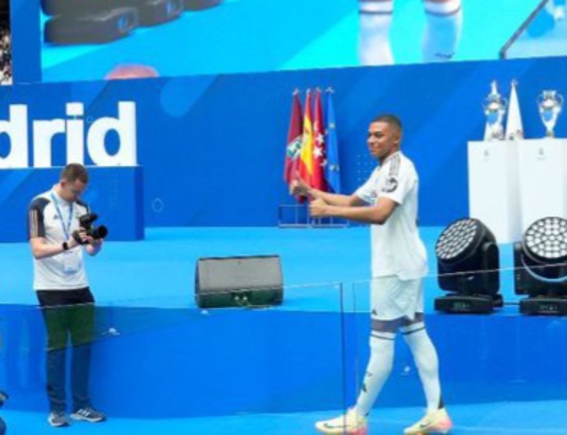 Mbappé fez o discurso em espanhol e agradeceu a torcida e todos os envolvidos. Beijou o escudo do clube, para a euforia dos madridistas, e pediu o "Hala Madrid" (Vamos, Madrid) do público tal qual Cristiano Ronaldo em 2009.