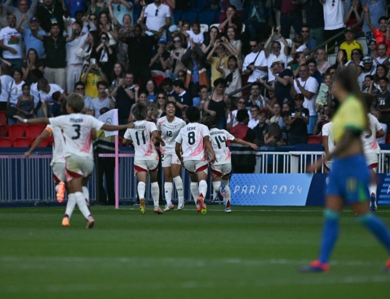 Dois gols nos acréscimos do segundo tempo transformaram um triunfo heroico em uma derrota dolorida da seleção brasileira feminina de futebol para o Japão neste domingo (28), no Estádio Parc des Princes (Parque dos Príncipes), em Paris. A vitória nipônica por 2 a 1 deixa as duas seleções com três pontos no grupo C, deixando a classificação às quartas de final para derradeira rodada, na próxima quarta-feira (31). No jogo de hoje, Jheniffer abriu o placar para o Brasil e Kumagai e Tanikawa viraram o placar.