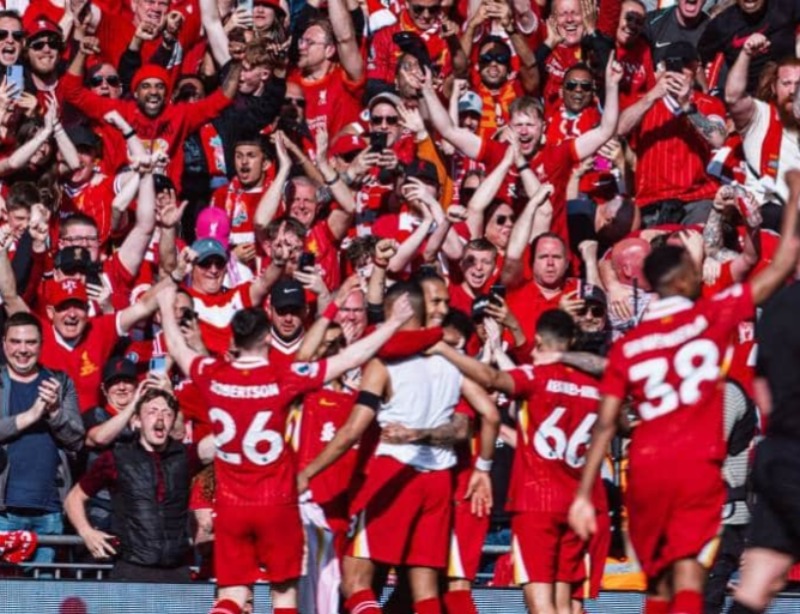 A torcida do Liverpool festejou nos arredores de Anfield desde as primeiras horas deste domingo. Esta é a primeira oportunidade de os Reds festejarem este título com seu estádio lotado e parando as ruas da cidade, já que o único troféu nacional da era Premier League (desde 1992/93) foi em 2019/20, com comemorações em meio à pandemia da Covid-19. A festa promete ser longa em Liverpool!