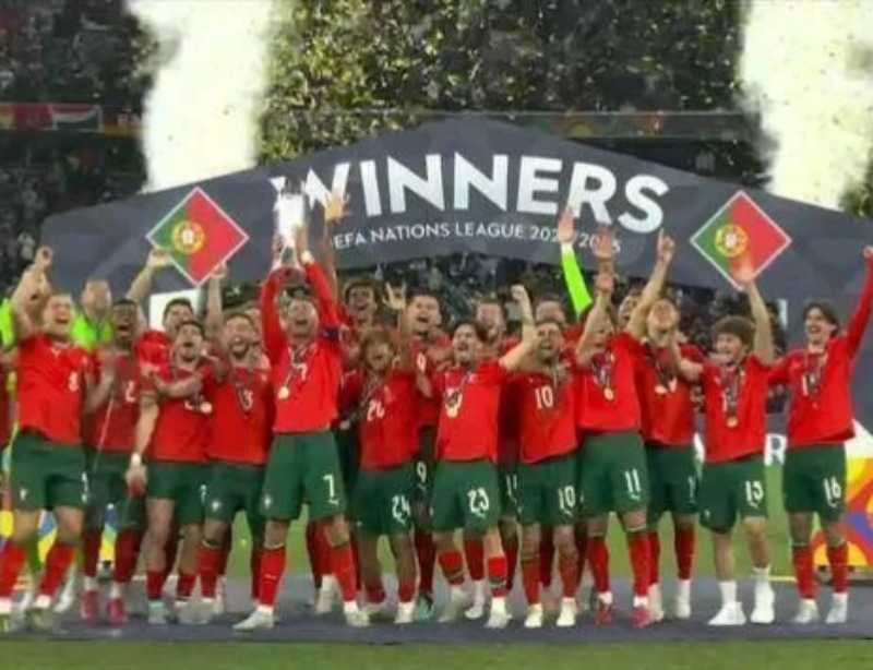 Portugal é bicampeão da Nations League 2024/25! A seleção de Roberto Martínez venceu a Espanha nos pênaltis por 5 a 3, após empate em 2 a 2, neste domingo (8), na Allianz Arena, em Munique, e voltou a levantar a taça.
