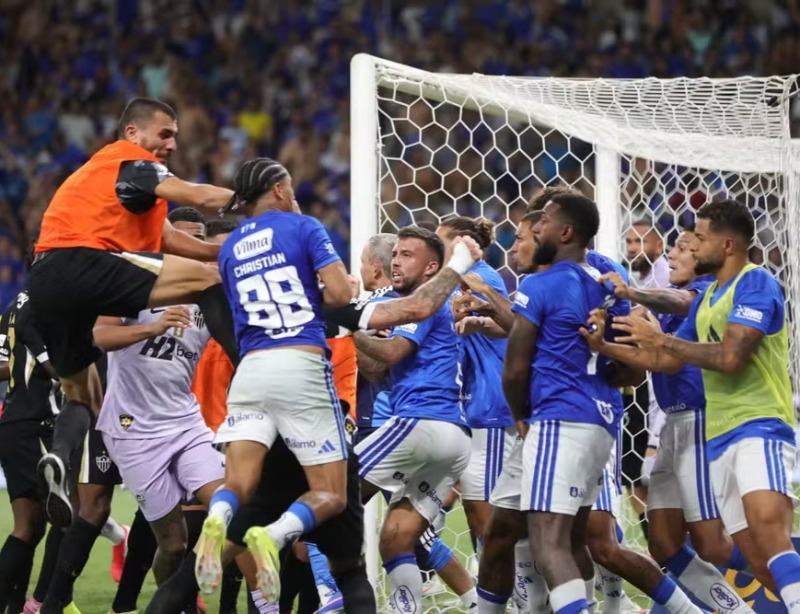 Cássio também tentou partir para cima do zagueiro Lyanco, mas foi contido. O defensor atleticano, logo depois, trocou socos com o meia Gerson em campo e levou um chute do goleiro cruzeirense. Depois, Lucas Romero deu um soco também no zagueiro.