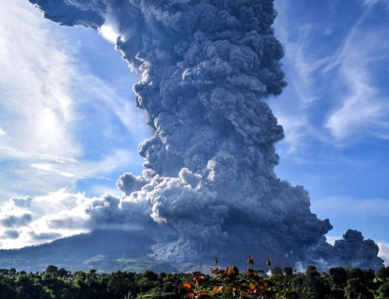 O vulcão Monte Sinabung entrou em erupção na madrugada desta segunda-feira (10), em Sumatra do Norte, Indonésia. O vulcão expeliu uma nuvem de cinzas que chegou a atingir 5 km de extensão. Moradores de aldeias próximas foram aconselhados a deixar o local.