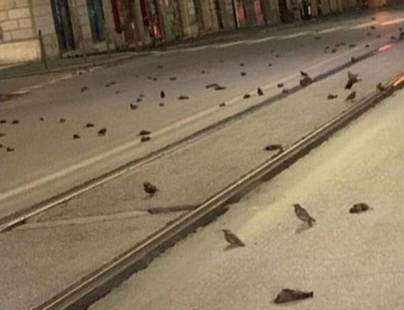 Centenas de pássaros foram encontrados mortos em uma rua próxima à principal estação ferroviária de Roma, nesta sexta-feira (1º), após a chegada do Ano Novo.