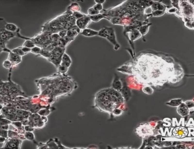 Nas imagens, os coronavírus são identificados por pontos vermelhos e, em formato de bolas cinzas, estão células saudáveis. Ao atacar as células, o coronavírus realiza um agrupamento — o que significa que as células infectadas se juntam a outras vizinhas e elas morrem. Segundo os pesquisadores, a ação no cérebro humano é parecida ao que ocorre no de morcegos.