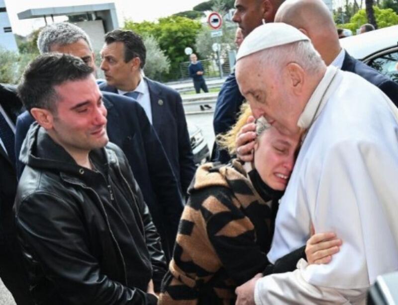 Ao deixar o hospital, O Papa Francisco saiu do automóvel e saudou e abençoou as pessoas que estavam do lado de fora. Abraçou um casal que perdeu a filha na noite de ontem, sexta-feira, detendo-se a rezar com eles.