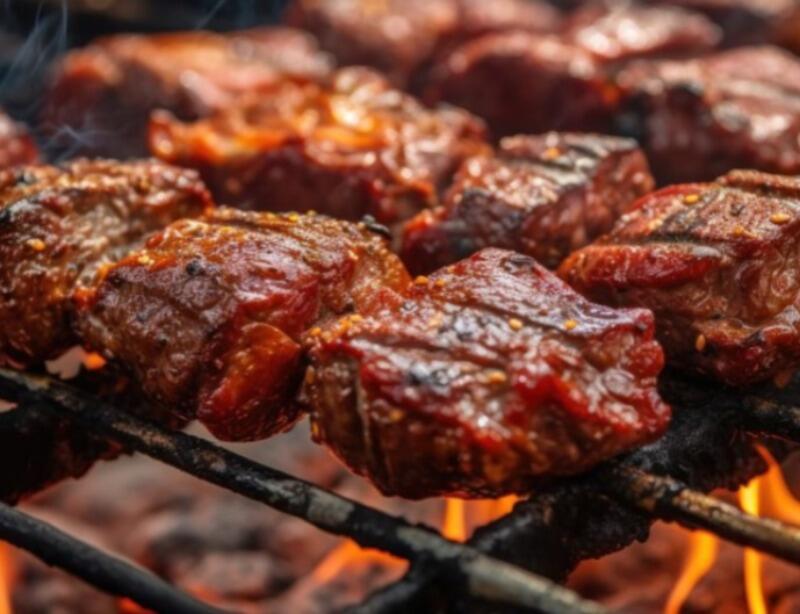 Cortes comuns no churrasco brasileiro são picanha, maminha, alcatra, baby bife, bife de chorizo, filé mignon e linguiça.