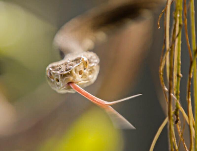 Encontrada nas florestas do oeste da África subsaariana, a víbora-do-gabão (Bitis rhinoceros) é considerada uma das cobras mais peçonhentas que existem. Apesar de se movimentar lentamente, ela pode atacar de maneira súbita, para frente ou para os lados. Uma pequena dose de seu veneno é mortal. Em um futuro com temperaturas mais elevadas, essa serpente pode expandir sua área de distribuição em 250%, migrando para regiões onde ela não era observada até então. Isso pode significar um aumento no número de pessoas picadas e um preocupante desequilíbrio ambiental.