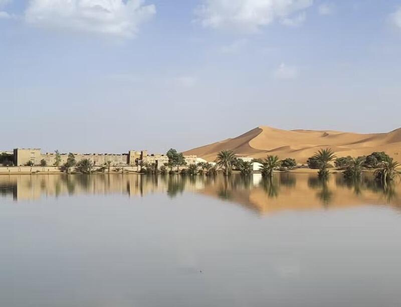 Uma chuva excepcional formou lagoas entre as palmeiras e as dunas do deserto do Saara, trazendo umidade para uma das regiões mais áridas do planeta.