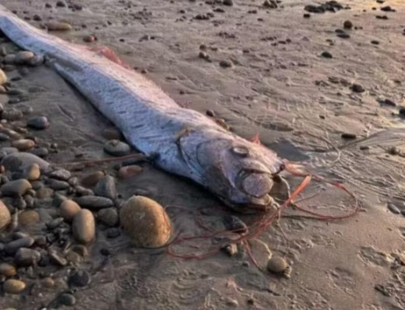A espécie em questão é o Regalecus glesne, conhecido como peixe-remo, que vive nas profundezas do oceano – geralmente a até 1.000 metros abaixo da superfície –, em uma zona chamada mesopelágica, onde não há luz do sol direta. Raro e misterioso, ele tem uma aparência incomum e pode atingir até 6 metros de comprimento.