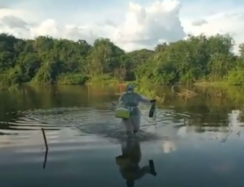 “Não dava para atravessar de carro para ir vacinar essa idosa e só faltava ela. O carro ficou me esperando, eu atravessei a pé e eu pedi a uma pessoa amiga da senhora para me pegar de moto do outro lado do rio para eu poder vacinar a senhora”, explicou.
