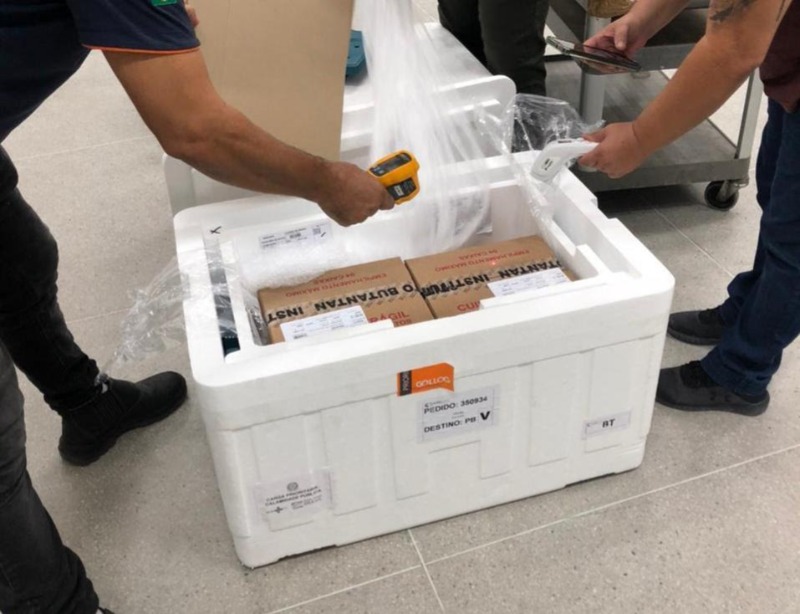 A Paraíba recebeu na tarde deste sábado (08), 16,9 mil novas doses da vacina Coronavac, do Instituto Butantan. A Secretaria de Estado da Saúde (SES) irá distribuir, neste domingo (09), pela manhã, 13.220 doses para as 12 Gerências Regionais de Saúde (GRS).
