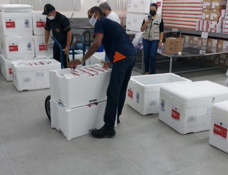 As 129.250 doses de vacinas Astrazeneca (Instituto Bio-Manguinhos/Fiocruz) chegaram, no início da tarde deste domingo (20), como informou ao ClickPB, o secretário de Estado da Saúde, Geraldo Medeiros. O desembarque ocorreu no Aeroporto Internacional Presidente Castro Pinto, na Região Metropolitana de João Pessoa.