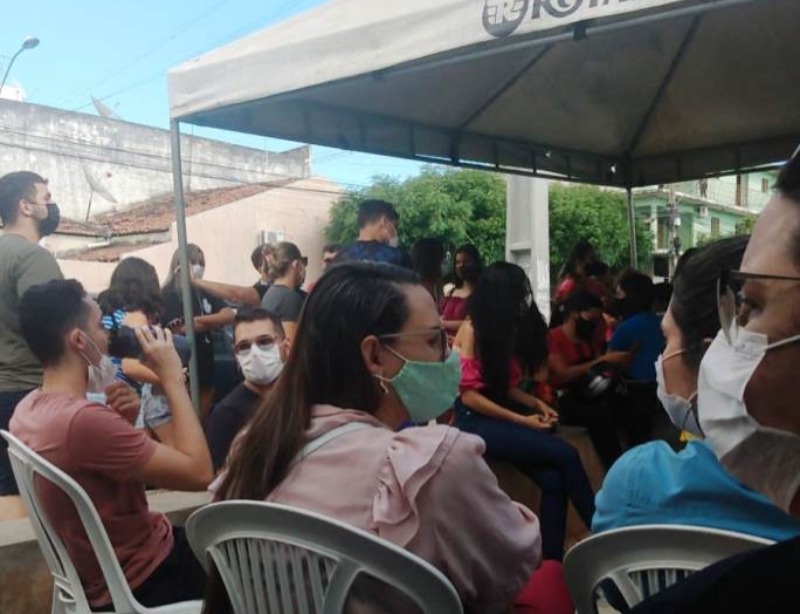 Nesta segunda-feira, dia 27, as pessoas se aglomeraram em busca de teste diante de sintomas gripais e uma usuária pediu para que fossem disponibilizados mais funcionários para evitar a demora. A Secretaria de Saúde do Município de Patos organizou para se ter vacinação em um espaço e teste em outro no local.