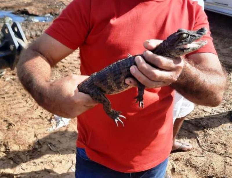 No início da tarde desta quarta-feira, dia 20, por volta das 14h00, trabalhadores que realizam serviços de terraplanagem às margens da BR 361, nas proximidades da Praça do Conjunto Bivar Olinto, em Patos, tiveram uma grande surpresa ao se depararem com um filhote de jacaré.