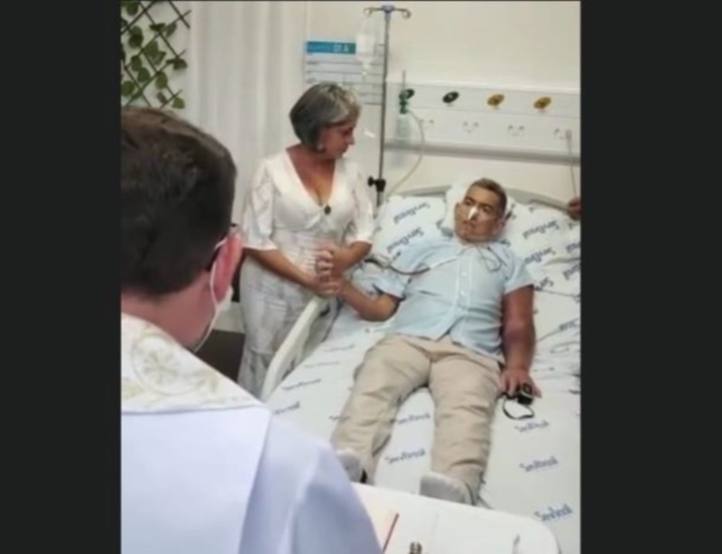 A cerimônia religiosa aconteceu sob as bênçãos do Padre Flávio e teve a autorização da direção do Hospital do Bem em decorrência de ser o desejo do paciente e da sua família.