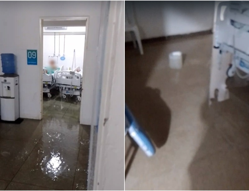 A água mostrada na imagem chega até alguns leitos e assusta à pessoa que fez as imagens.