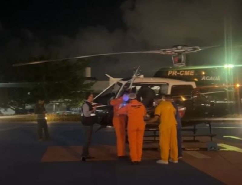O helicóptero utilizado na transferência da vítima foi o Acauã. Uma equipe do Corpo de Bombeiros atuou em todo processo e a transferência foi considerada bem sucedida. Até a publicação desta matéria a unidade não havia divulgado o estado de saúde da vítima.