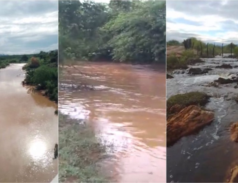 O Rio Farinha, principal afluente da Barragem da Farinha, também desceu em cheia após as fortes chuvas na região de Cacimba de Areia, Areia de Baraúnas e Passagem, e o manancial já começa a receber um bom volume de água ao longo deste domingo (19).