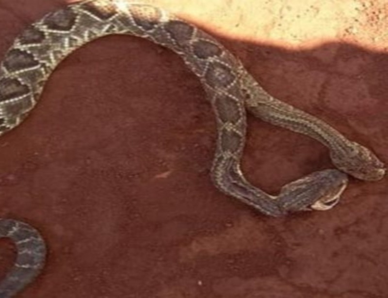 O agricultor se deparou com uma cobra cascavel com duas cabeças, uma raridade na natureza. O homem que preferiu não se identificar, disse que levou um grande susto e por pouco não foi picado pelo réptil.